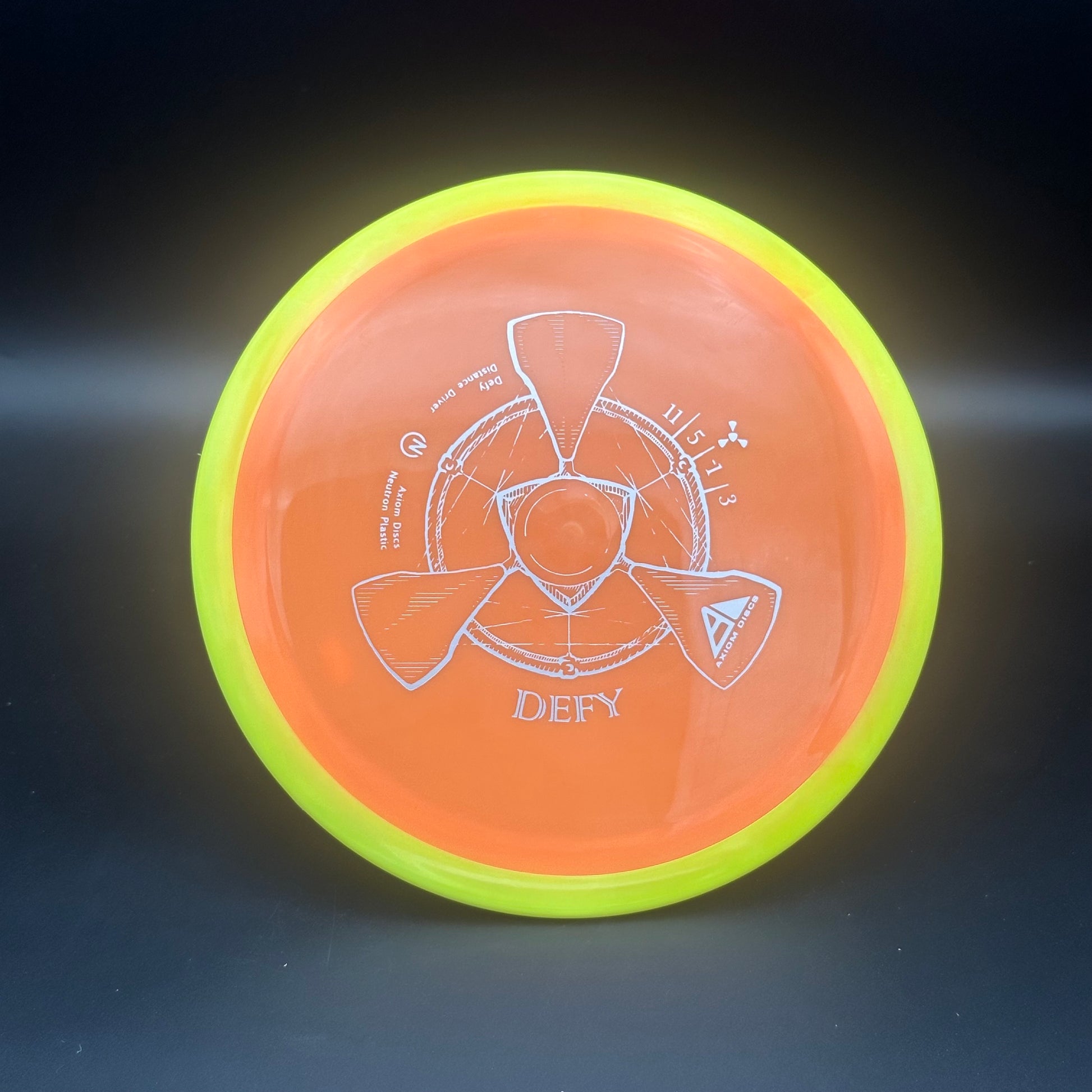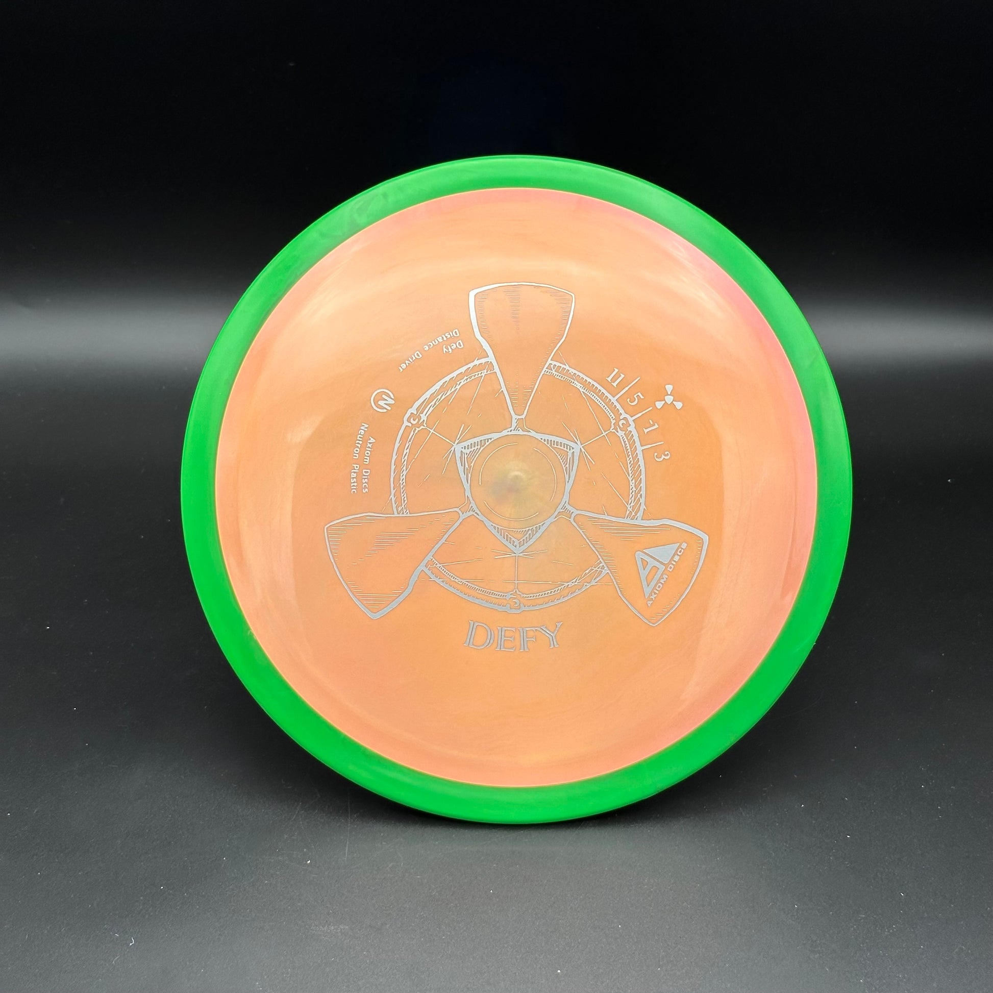The Axiom Discs Defy is built to challenge limits and defy expectations. Designed for players who refuse to settle, this disc delivers a powerful, stable flight that cuts through the air with confidence. Its bold design and reliable performance make it the perfect choice for those ready to take control and dominate every throw. Step up, stand out, and let the Defy lead your game to new heights.